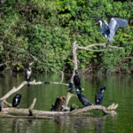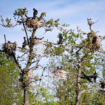 Am Prerower Strom sehen wir Silberreiher hoch oben in den Baumkronen. Zur Boddenseite überraschen uns Wasserbüffel.