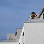 Ich gebe es zu: zwar habe ich in Köln studiert, aber den Stadtteil Stammheim nie besucht. Als es hieß, die nächste Fotoexkursion gehe in den Schlosspark von Stammheim, dachte ich zuerst an das Stuttgarter Gefängnis, was ja nicht sein konnte, und stellte mir dann die Frage, wieso man dieses Schloss nicht kenne. Nun, das Schloss, bereits 1637 erwähnt, wurde 1944 bei einem Bombenangriff zerstört. Es gibt nur noch historische Ansichten davon, die wiederum Anlass für den deutschen Maler und Bildhauer Herbert Labusga waren, seine Monumentalskulptur „Schloss mit Grafenpaar“ am Rheinufer des Schlossparks zu errichten. Der Schlosspark wurde 1952 von der Bayer AG übernommen, die auf dem Gelände des ehemaligen Schlosses ein Altenheim errichtete, wobei das Portal des Schlosses integriert wurde. Der Park steht seit 2002 für jährlich wechselnde Ausstellungen (Skulpturen) zur Verfügung, z. Zt. von Peter Nettesheim, Thibaut Gangloff und anderen namhaften Bildhauern. In das Parkgelände integriert ist die Pfarrkirche St. Mariä Geburt, deren Vorläufer bereits im 11. Jh. nachgewiesen ist.