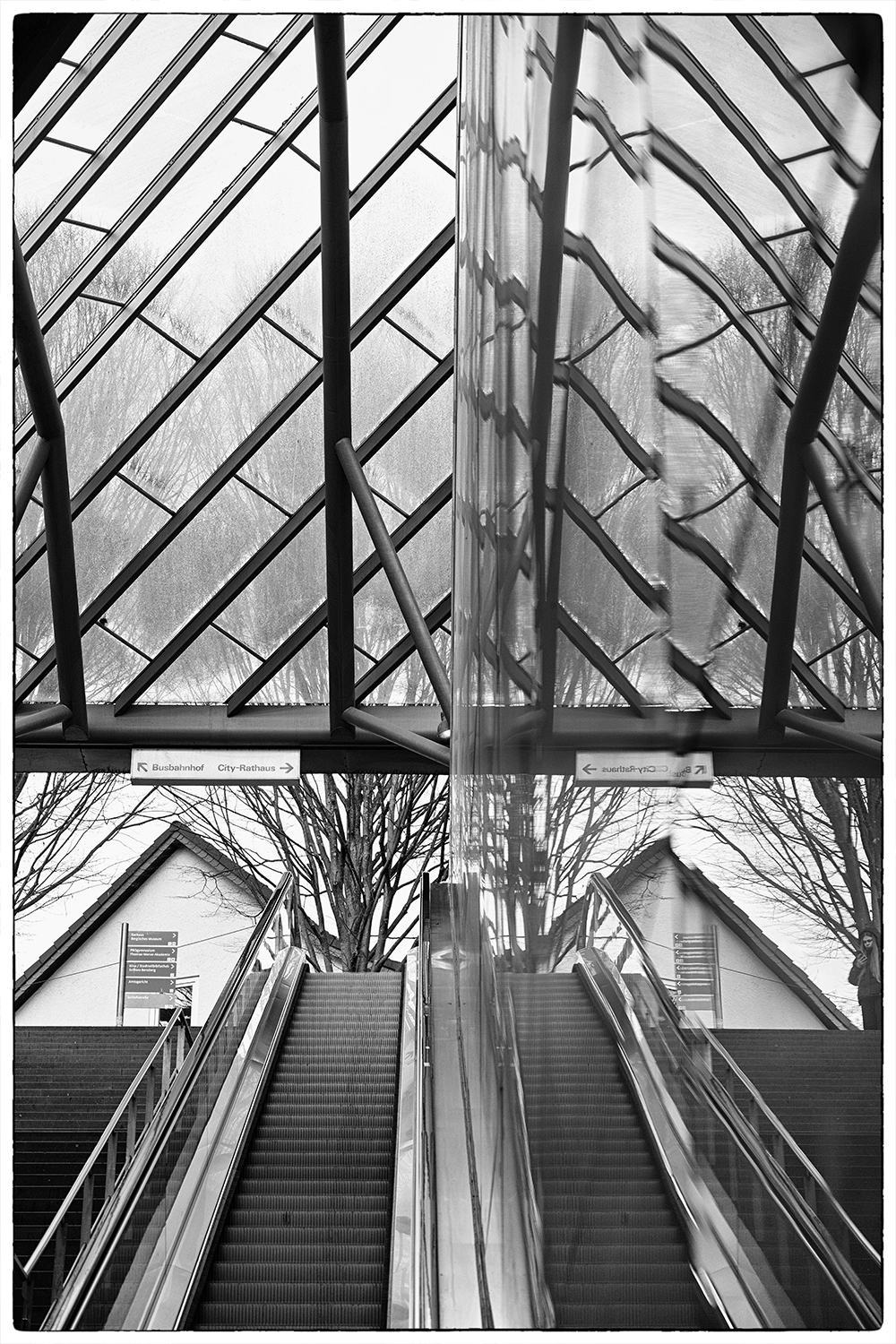 Rolltreppe und Dach