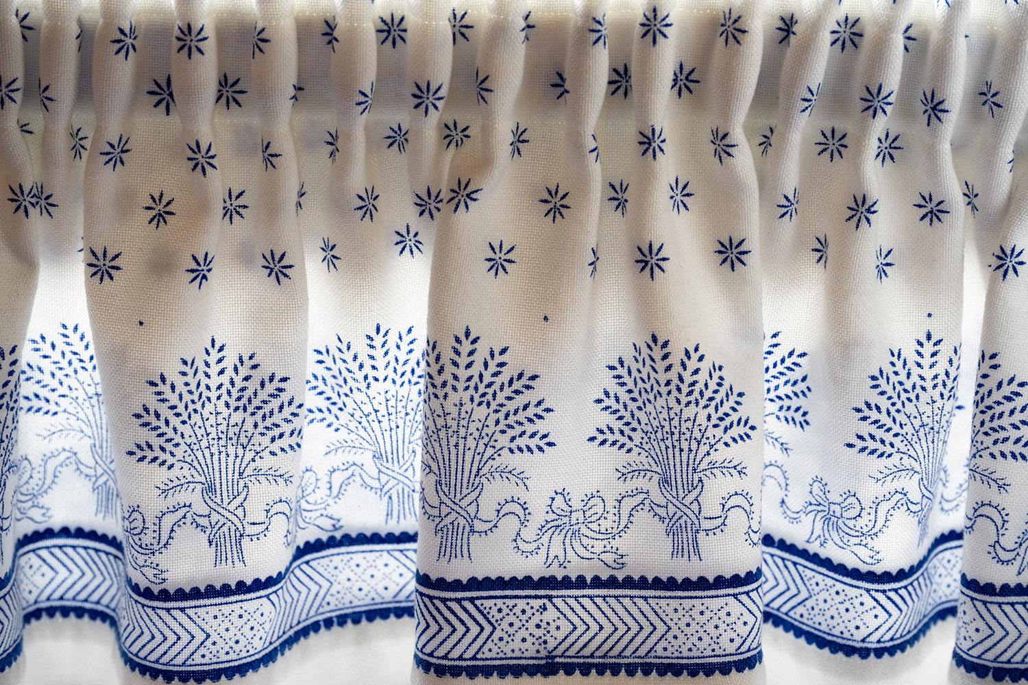 Gardine im Blaudruck