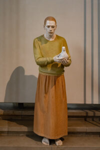 Hl. Joseph mit der Friedenstaube Bei den Mönchen und anderen Betrachtern ist die Skulptur z.T. befremdlich, erwartet man doch nicht diese Jugendlichkeit, ja Androgynität des Heiligen.