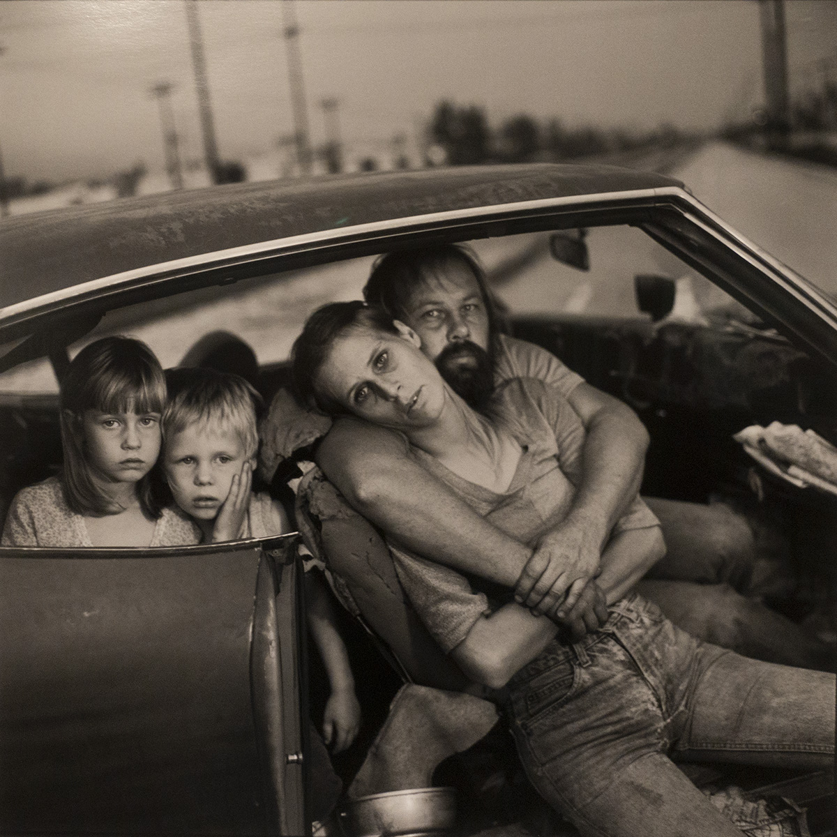 Familie Damm 1987 begleitet Mary Ellen Mark die Familie Damm, die in einem Auto lebt. Mutter Linda (27) mit ihren Kindern Crissy (6) und Jesse (4) sowie dem Stiefvater Dean (32)