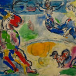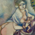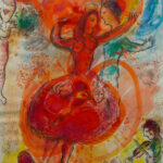 Geboren am 06. Juli 1887 in Peskowatik, heute ein Stadtteil von Witebsk im heutigen Belarus, unter dem Namen Moische Chazkelewitsch Schagal wurde der Maler Marc Chagall schon in den Anfängen seiner Pariser Zeit (1911) bekannt mit seinen eigenwilligen Reminiszenzen an seine alte Heimat und den symbolhaften Motiven in seinen Bildern. Paris wurde zur zweiten Heimat, aber erst als er nach neun Jahren Rückkehr nach Russland wegen des 1. Weltkrieges zurückkonnte. 1937 erreichte er die französische Staatsbürgerschaft, musste aber als Jude 1941 in die USA auswandern, von wo er 1946 wieder nach Europa zurückkehrte, aber sich erst 1948 endgültig in Frankreich niederließ. Es folgten viele Aufträge, verbunden mit Reisen bis nach Japan. Im Wesentlichen aber malte er Szenen, in denen er die Welt in Witebsk mit Erinnerungen an seine 1944 verstorbenen Frau Bella Rosenfeld verschmolz. Chagall nahm dreimal an der documenta in Kassel teil (1955, 1959 und 1964), belebte die Glasfensterkunst für Kirchen und Synagogen (z.B. für die Kathedrale von Reims), schuf Wanddekorationen für Häuser wie die Metropolitan Opera und schrieb Texte über Kunst und Literatur in jiddischer Sprache.