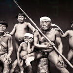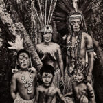 Die reale Begegnung mit der indigenen Bevölkerung dürfte den meisten Betrachtern verschlossen bleiben. Umso eindrucksvoller ist darum, ihnen in den Porträts von Salgado zu begegnen und ein Gefühl für ihre Lebensweise und Traditionen zu bekommen. Man mag zwar an die historischen Fotografien anderer Naturvölker aus kolonialer Zeit erinnert sein, die in der Absicht entstanden sind, dem Betrachter ihre Primitivität zu dokumentieren. Dieser Gedanke scheint bei Salgado abwegig, auch wenn die Bilder inszeniert sind. Begleittexte zu den Porträts informieren nicht nur über die jeweilige Ethnie (Yanomami, Maturacá, Korubo, Zo’è-Ethnie, Piaú, Yawanawá u.a.), sondern auch über ihre Namen und Stellung in der Gemeinschaft, die z.T. erst im 21. Jh. ersten Kontakt zu Nicht-Indigenen hatte. Dies betrifft aber nur wenige Gemeinschaften, die in den indigenen Territorien (14% der Staatsfläche) leben. Dort genießen sie weitgehend Schutz, vermutlich so lange wie ökonomische Interessen nicht dagegen stehen. Die auf ca. 1,7 Mio. Menschen geschätzte indigene Bevölkerung (in etwa 305 Völkern) lebt z.T. in Städten, wo ihre Akzeptanz problematisch ist.