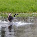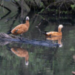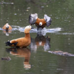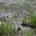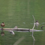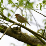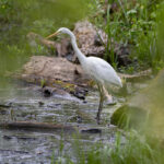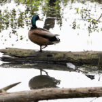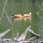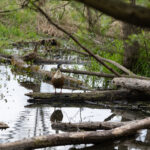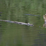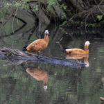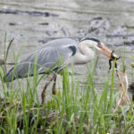 Dieses Mal sollte es noch vor Sonnenaufgang in die Urdenbacher Kämpe gehen. Einige Tiere waren schon aktiv; auch der Reiher versuchte wieder sein Glück an derselben Stelle wie vorher, aber dieses Mal flog er auf, als er uns kommen sah. Dafür fischte er dann etwas weiter in den Wassern des alten Rheins, über denen ein Hauch von Nebel lag. Die Blässhühner waren mit erneutem Nestbau beschäftigt. Die Vögel brüten häufig zweimal im Jahr. Die Frösche waren vereinzelt zu hören, aber zum großen Froschkonzert war es noch zu früh: außer uns waren ja sonst nur ein paar Jogger unterwegs, die hätten zuhören können. Die Kämpe gehen zum Rhein hin in landwirtschaftliche Nutzung über. Wir kommen an Haus Bürgel vorbei, heute ein Römer-Museum und eine Biologische Station. Ein Hase hoppelt über den Rübenacker und hat für wenige Augenblicke auch die Klatschmohnränder am Getreidefeld im Sinn. Rheinnah stehen Weiden und Pappeln, zum Teil abgestorben, aber als einstige Majestäten Respekt einflößend.