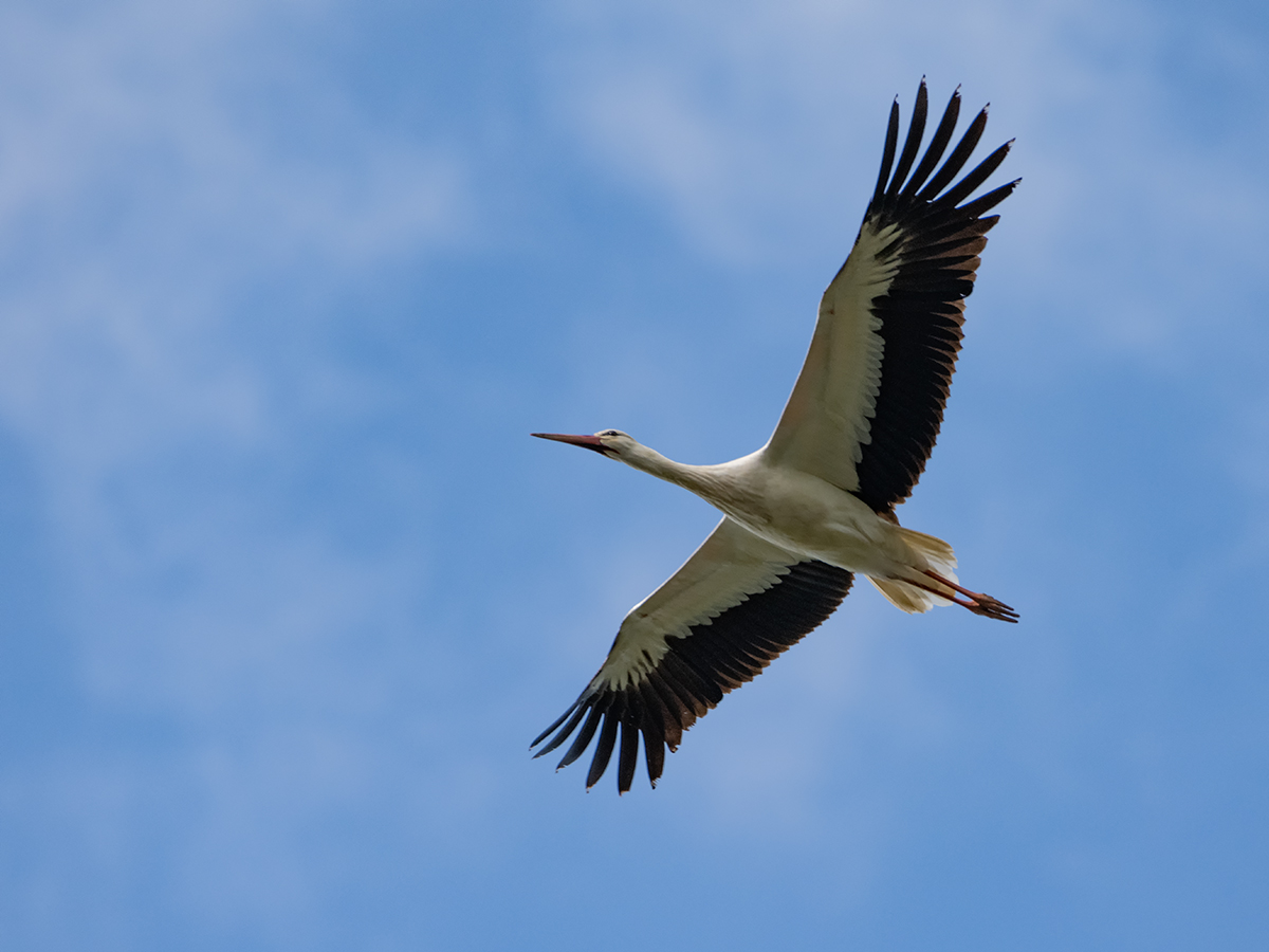 Ein Storch fliegt vorüber