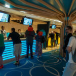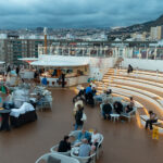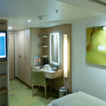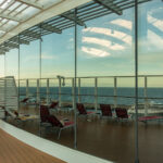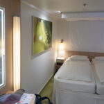 Um an Bord zu gelangen, musste man erst für die Bordkarten anstehen und anschließend einen Sicherheitscheck durchlaufen. Wie am Flughafen, wurden Handgepäck und alle Utensilien in Hosen und Jacken durchleuchtet. Die Koffer konnten vorher aufgegeben werden und wurden dann vor die Kabine gestellt. Beim Einchecken in Santa Cruz war der Andrang entsprechend groß. Leider musste diese Prozedur auch jedes Mal erneut durchlaufen werden, wenn man das Schiff für Landausflüge verlassen hatte und am Abend wieder an Bord wollte. Dabei waren die Laufwege bis an Bord und dann auf dem Schiff sehr lang. Unsere Kabine befand sich im vorderen Teil des Schiffes, und um zu den Restaurants oder Event-Stätten zu gelangen, musste man die endlos anmutenden Gänge gehen, von denen Abzweigungen zu den Aufzügen führten. Wir hatten uns bewusst für eine Innenkabine entschieden, da wir davon ausgingen, die meiste Zeit an Bord im Restaurant, in der Sauna oder bei einer Veranstaltung zu sein. So war es auch. Wenn das Wetter an den See-Tagen freundlich war, saßen wir meist im Windschatten an Deck. Einen Balkon haben wir nicht vermisst. Deck 10 war auch wegen etwaiger Motorgeräusche günstig; Kabinen auf Deck 5 konnte da schon lauter sein.