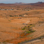 Für den Landgang hatten wir schon von zu Hause aus einen Motorroller gebucht. Direkt am Hafen war der Verleiher, und nach dem ersten Frühstück nach der Silvesternacht auf der AIDA ging es mit ein Geschwindigkeit bis 80 km/h los. Freilich machte der Wind (die Insel heißt ja nicht umsonst so) heftig zu schaffen. Was wir auf unserer Strecke zu sehen bekamen, war schon ein wenig öde. Während die anderen kanarischen Inseln, selbst Lanzarote mit seiner schwarzen Lava und seiner ausgeklügelten Weinbaukultur, höchstes Lob verdienen, enttäuschte Fuerteventura ein wenig. Immerhin fuhren wir bis Betancuria, der einstigen Hauptstadt der Insel ab 1404, als Jean de Béthencourt sich hier niederließ. Der malerische Ort konnte dann über die vorherig durchfahrene Trostlosigkeit der Llanos de la Concepción hinwegtrösten. Außerdem kann man natürlich nicht an einem Tag mit dem Motorrad die Insel erkunden. Auf den Besuch der sturmumtosten Klippenbucht Playa de la Pared mussten wir verzichten.