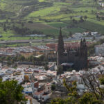 Auch diese Insel hatten wir bereit schon einmal bereist; damals hatte uns besonders das zentrale Bergland fasziniert, und so sollte es auch dieses Mal wieder dorthin gehen. Allerdings ließen die über dem Bergland hängenden Wolken vermuten, dass wir nicht viel sehen würden. Von Las Palmas fuhren wir mit dem Mietauto zunächst nach Arucas an der Nordküste, wo uns vom Mirador de la Montana de Arucas die mit Folien abgedeckten Treibhäuser und Bananenfelder auffielen. Ursprünglich auf Zuckerrohr spezialisiert (bis 1920er-Jahre), wechselte man zu Bananenplantagen, um heute überwiegend Gemüse, Früchte und Blumen anzubauen.