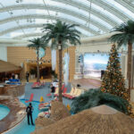 Bisher hatten meine Frau und ich uns stets gesträubt, diese Form der Reise zu wählen. Aber zum Abschluss des Jahres 2025 und als hoffnungsfroher Auftakt für 2026 haben wir es dann doch gewagt. Dass es gleich auf einem der größten Kreuzfahrtschiffe sein sollte, hing von den Reisedaten ab. Die AIDA Cosmo aus dem Jahr 2022 und die baugleiche AIDA nova nehmen mit 183 900 BRZ (= Bruttoraumzahl) und einer Länge von 357 m und einer Breite von 42 m Platz 9 im Ranking ein. Laut Kapitän Vincent Cofalka wiegt das Schiff leer 70.000 Tonnen, mit Gästen, Besatzung und Koffern 81.000 Tonnen) Mit einer zugelassenen Passagierzahl von 6880 und einer Besatzung von ca. 1500 Personen kann sie sich aber durchaus mit dem derzeit größten Kreuzfahrtschiff „Icon of the Seas“ von 2024 messen lassen. Beide Schiffe stammen aus der Meyer-Werft in Papenburg bzw. Turku.