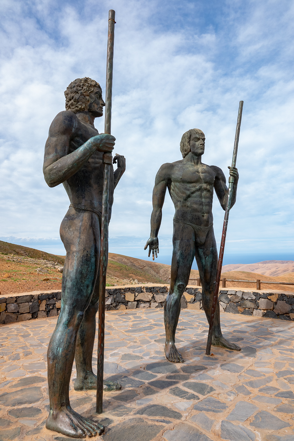 Mirador de Estatuas de Guize und Ayoze Die Bronzefiguren erinnern an die die letzten Herrscher der Urbevölkerung, bevor sie 1405 bezwungen, (zwangs)getauft wurden und forthin Luis und Alfonso hießen.