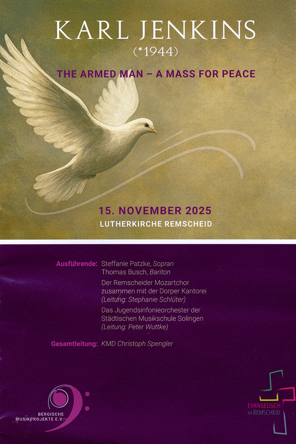 Karl Jenkins – The Armes Man – A Mass for Peace am 15.11.25 in der Lutherkirche Remscheid